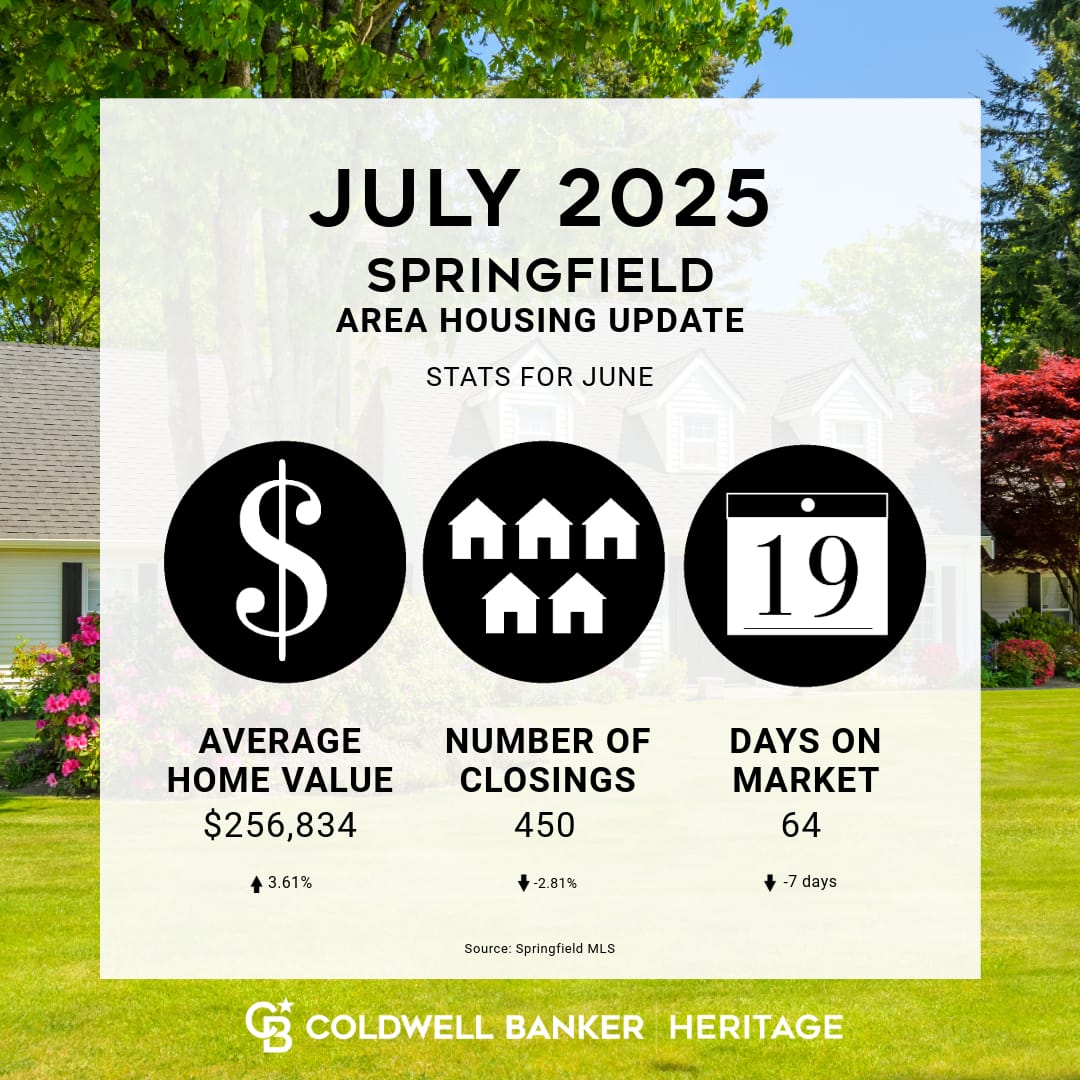 Springfield experienced a slight dip in total sales but still posted gains in pricing and efficiency. June saw 450 homes sold, a 2.81% decrease from May. However, the average sales price rose to $256,834, a 3.61% increase over the previous month. Homes spent 64 days on the market on average, down from 71—an encouraging sign for sellers.